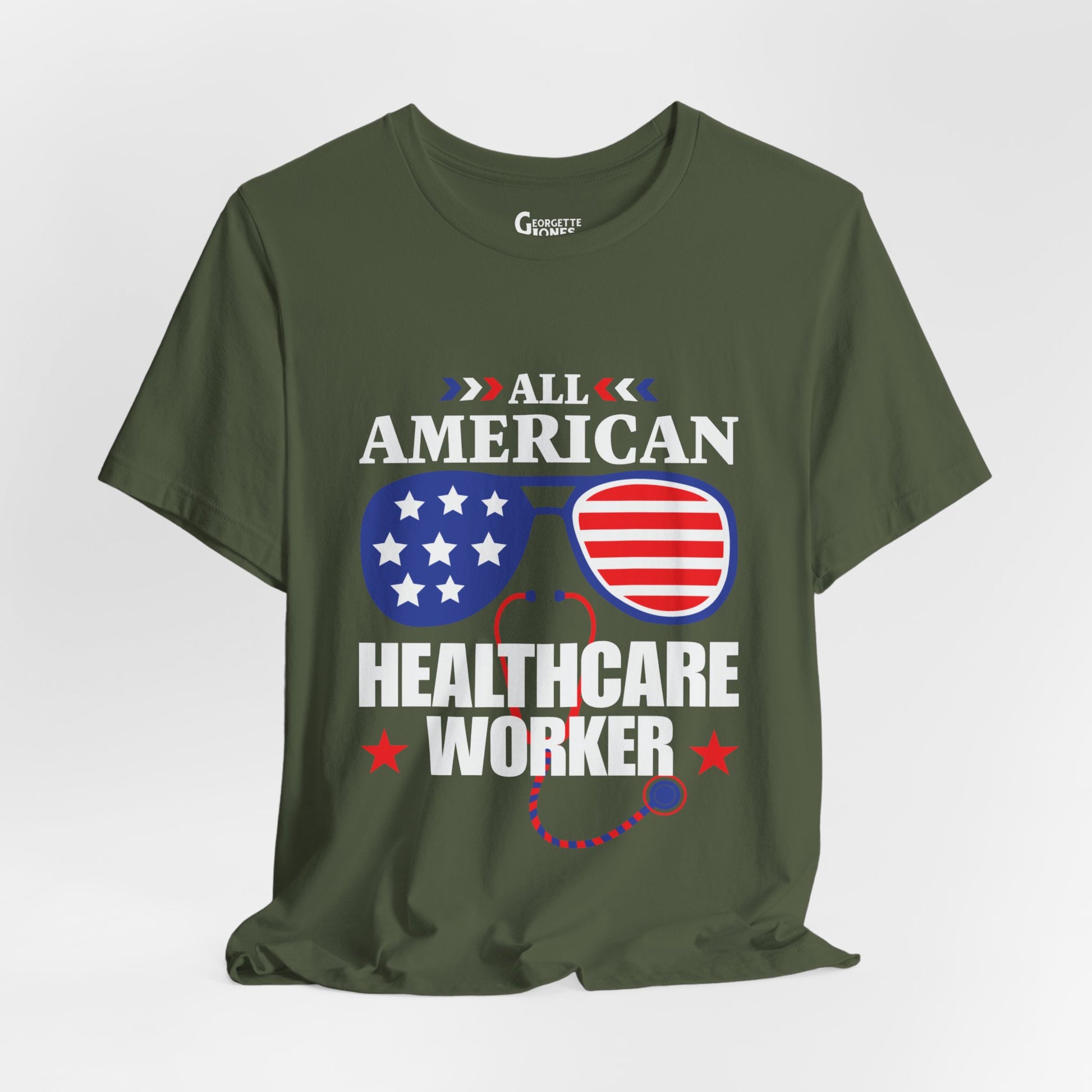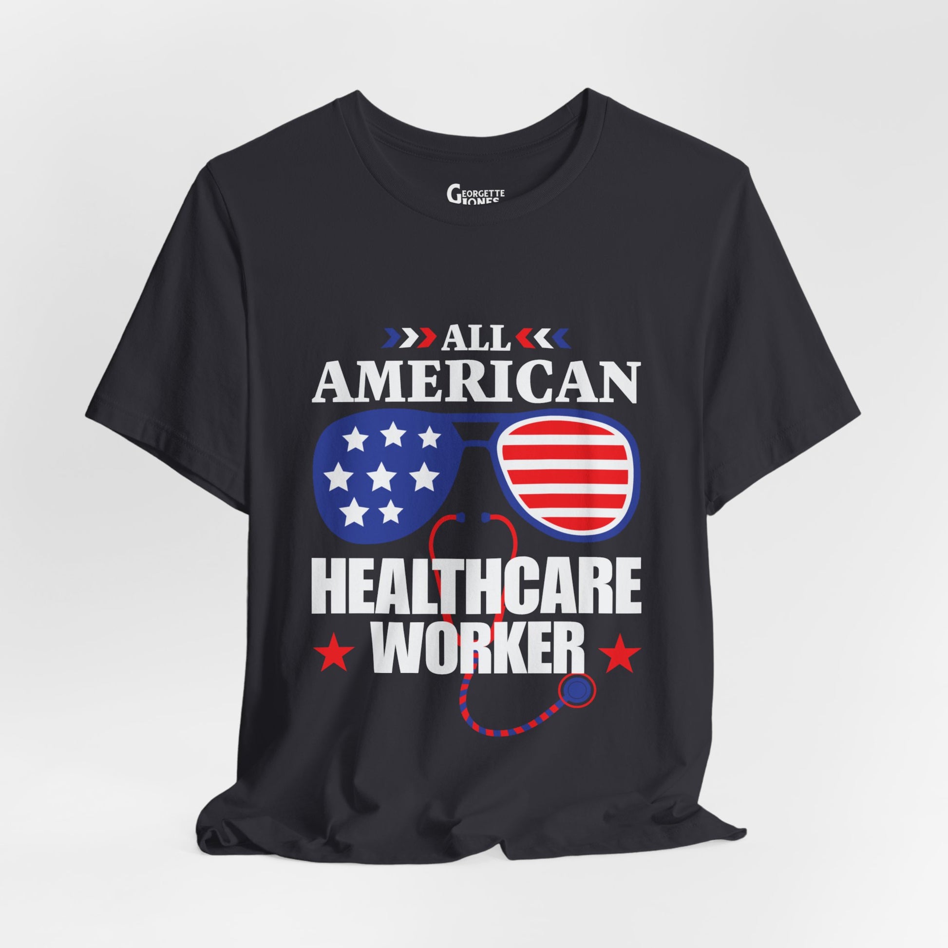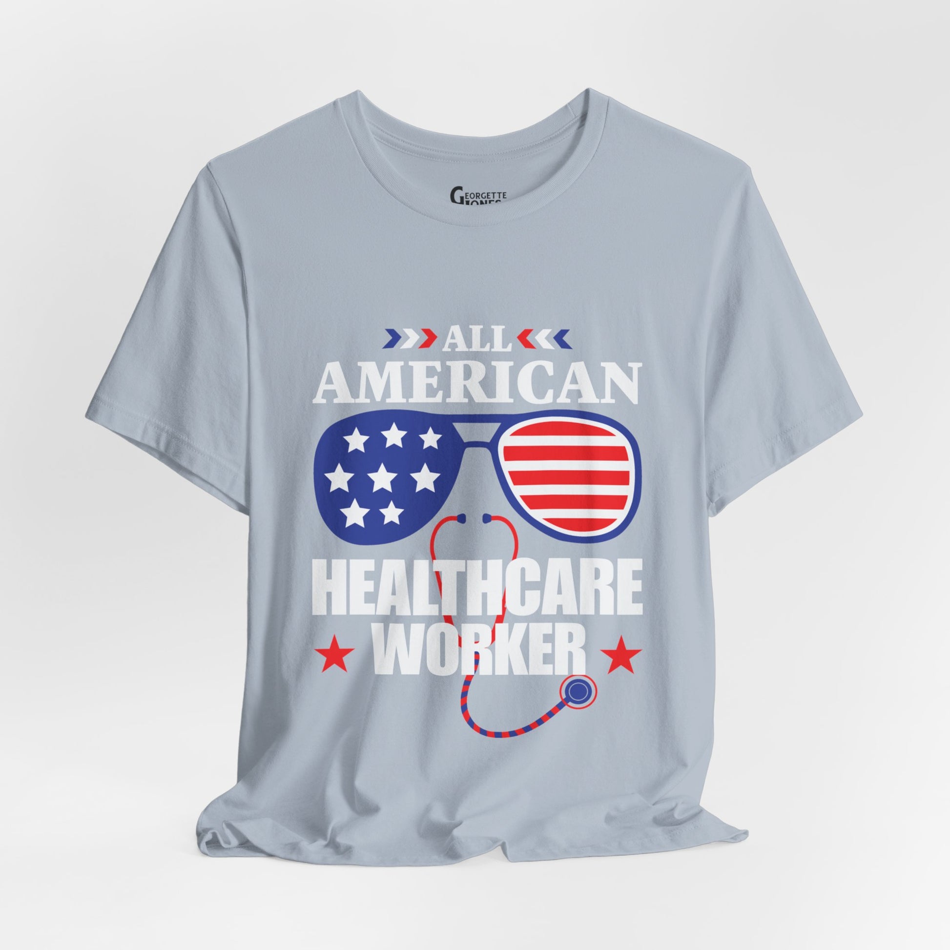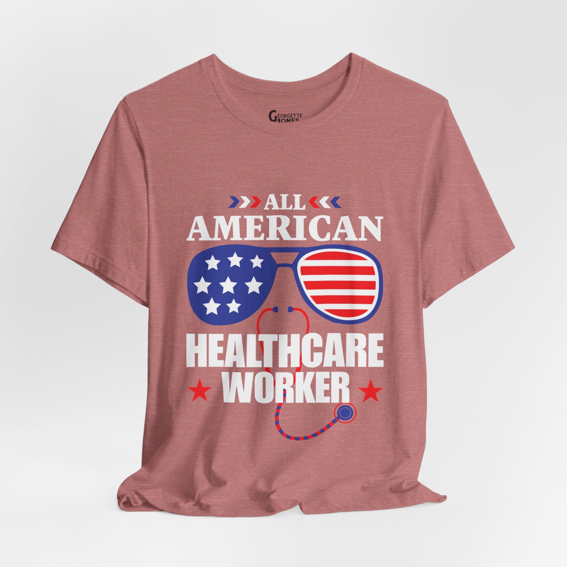 Celebrate July 4th with pride in our "All American Healthcare Worker" t-shirt! Perfect for honoring our dedicated healthcare heroes with patriotic flair. Show your support and gratitude while enjoying the festivities in style. Available now at "JonesInForIt" where patriotism meets appreciation.