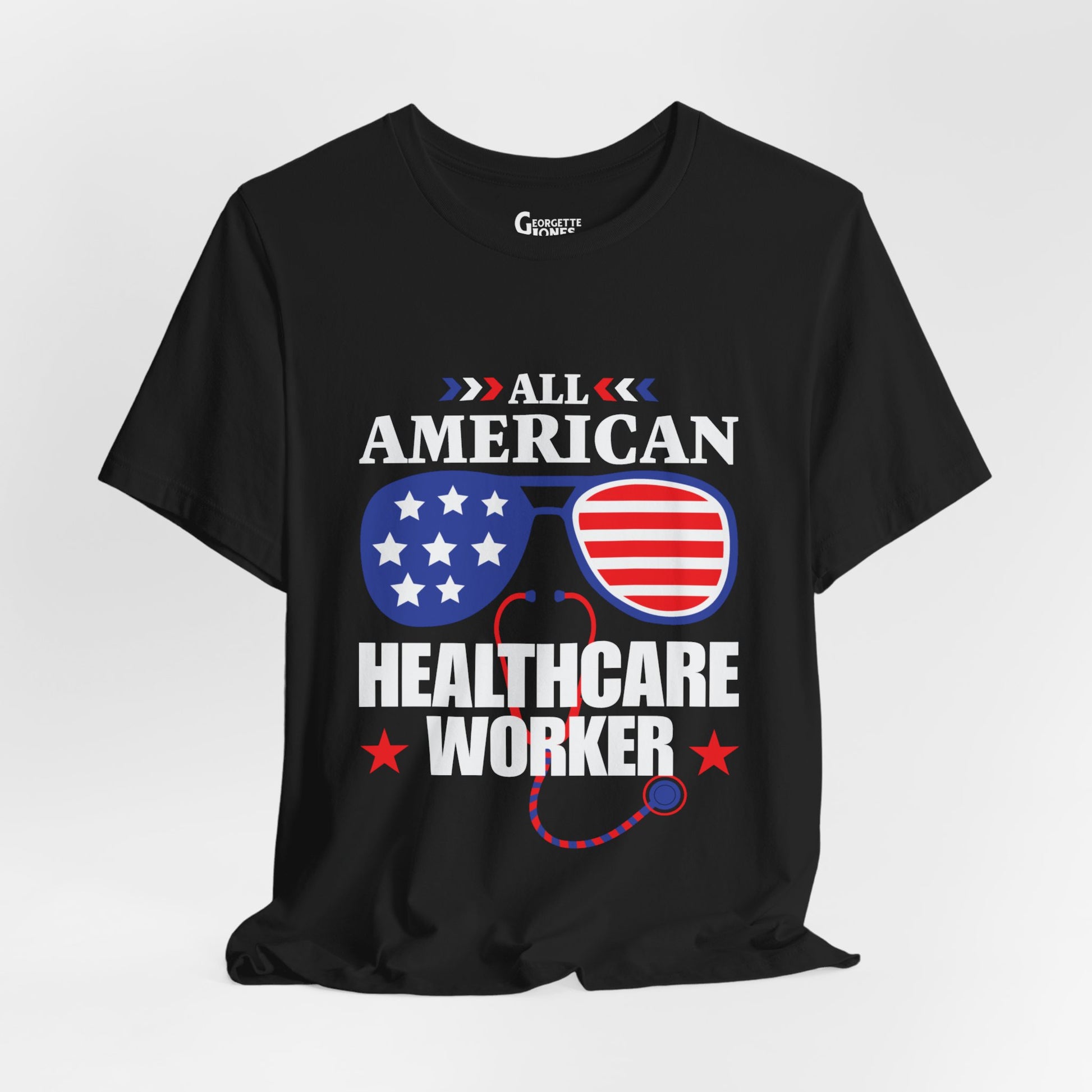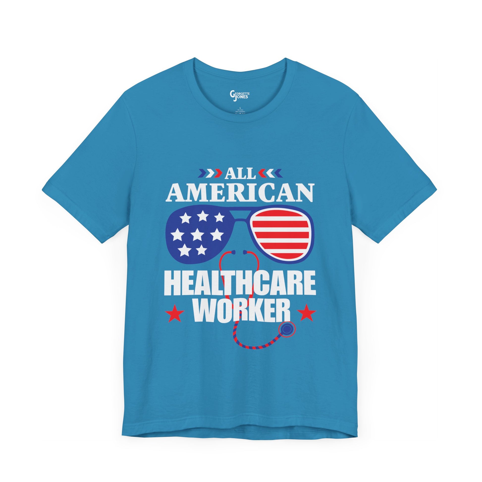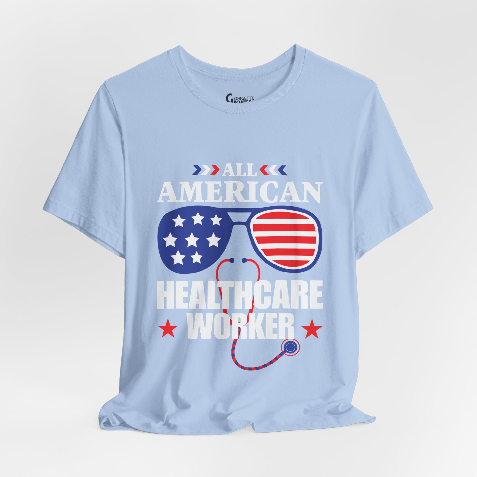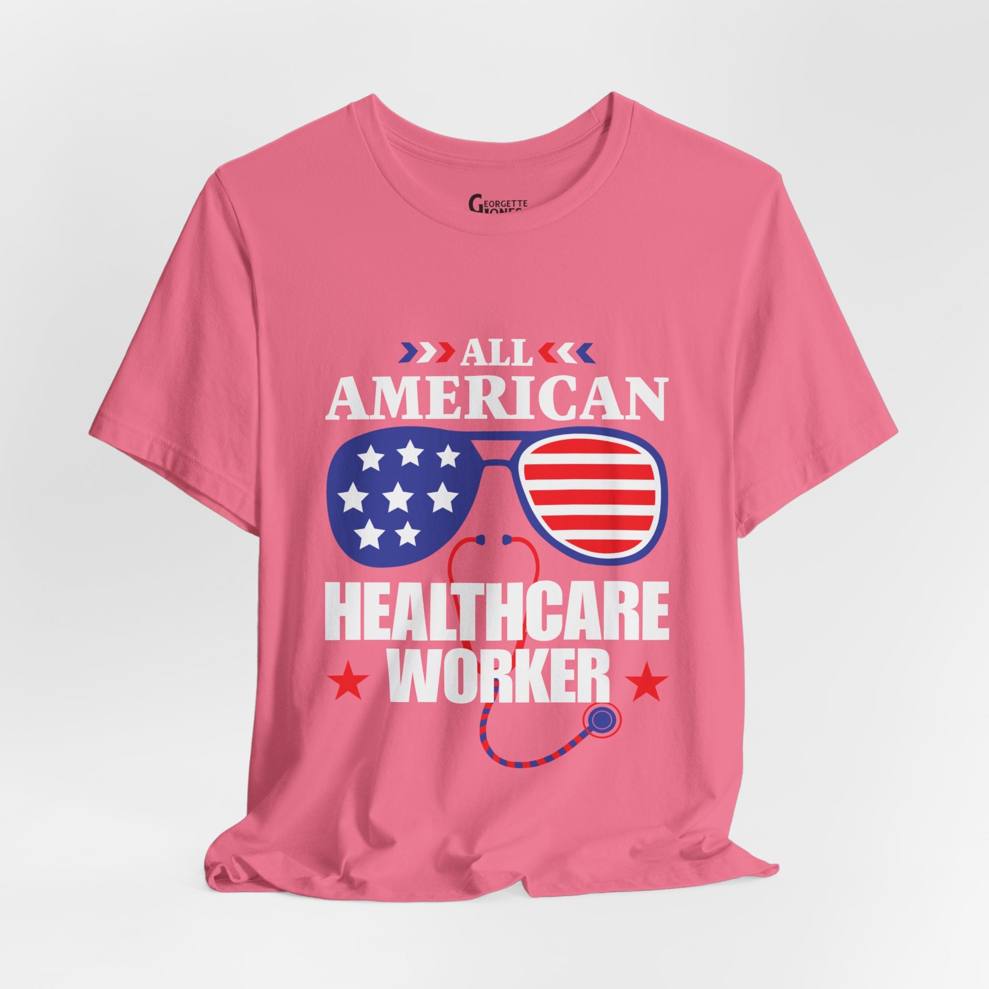 Celebrate July 4th with pride in our "All American Healthcare Worker" t-shirt! Perfect for honoring our dedicated healthcare heroes with patriotic flair. Show your support and gratitude while enjoying the festivities in style. Available now at "JonesInForIt" where patriotism meets appreciation.