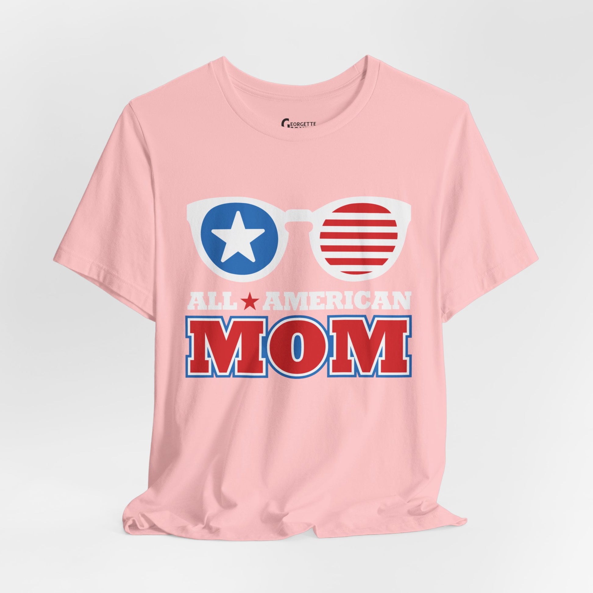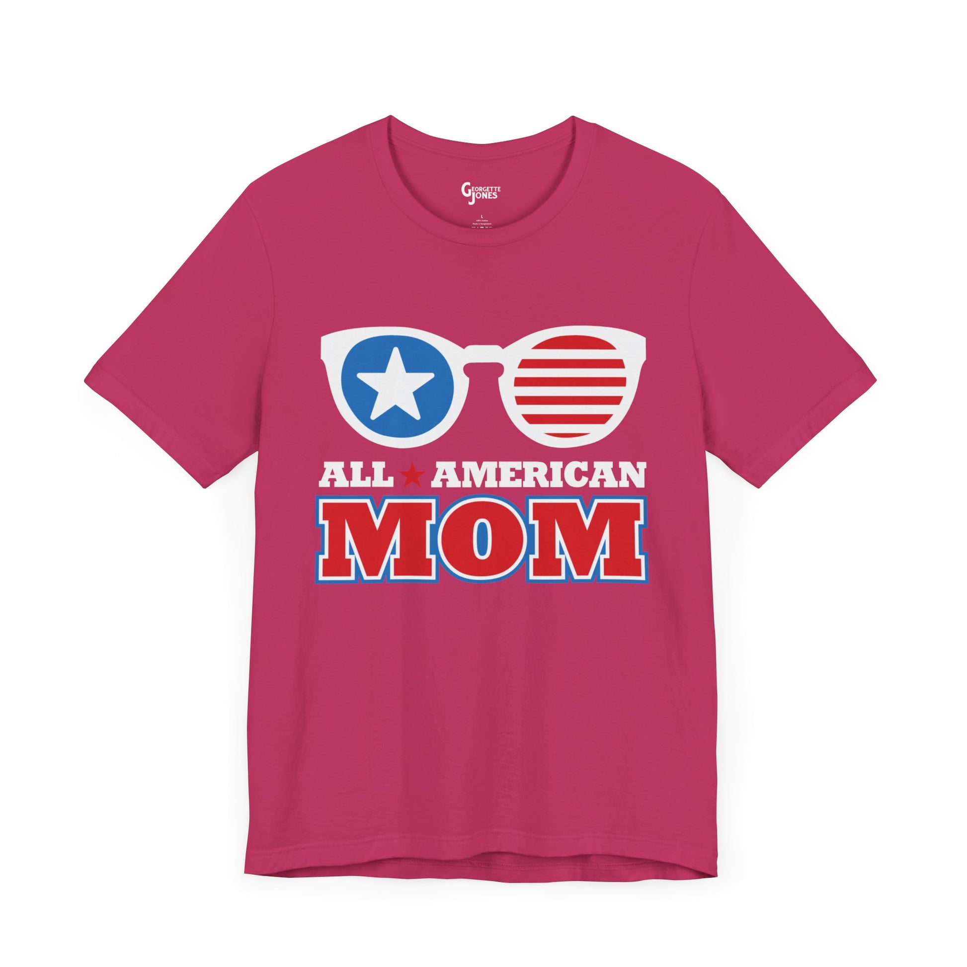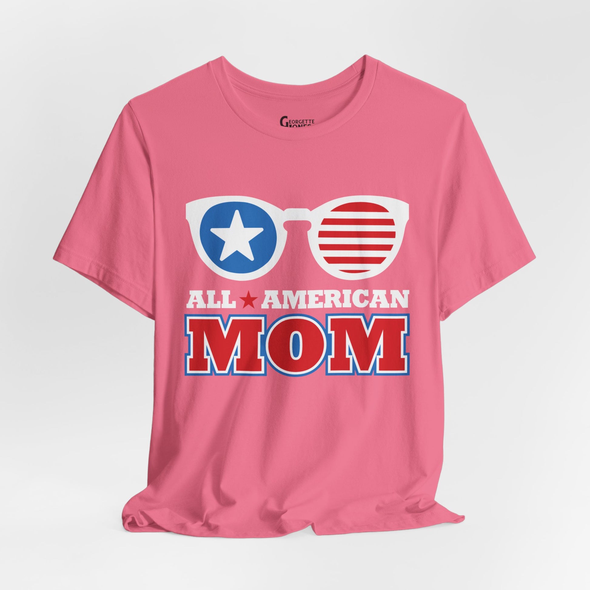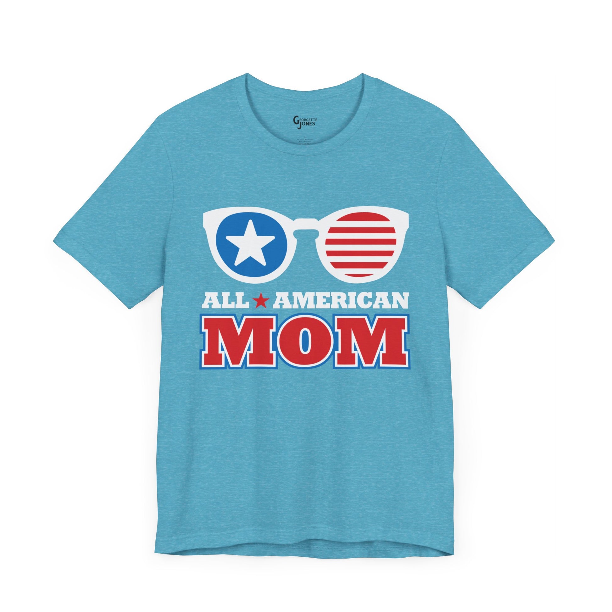 Celebrate fatherhood with our "All American Mom" t-shirt! Perfect for the proud, patriotic dad, this high-quality tee combines comfort and style. Ideal for family gatherings, barbecues, and everyday wear, show off your American pride with every step.