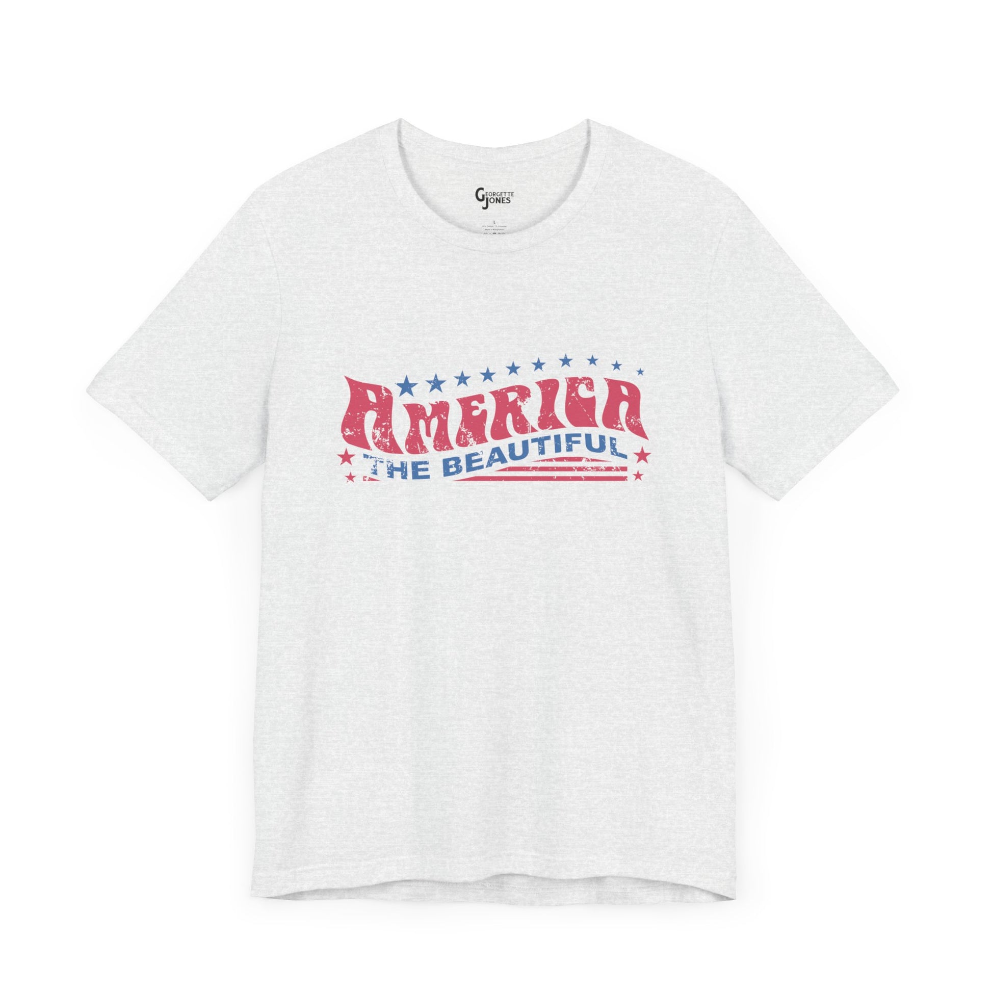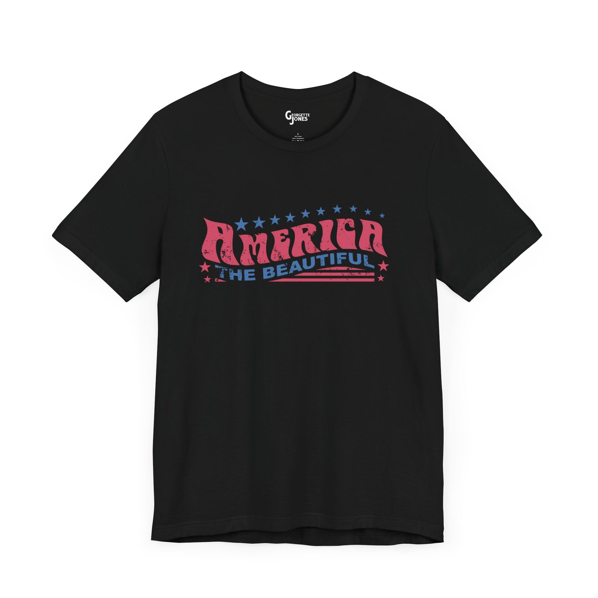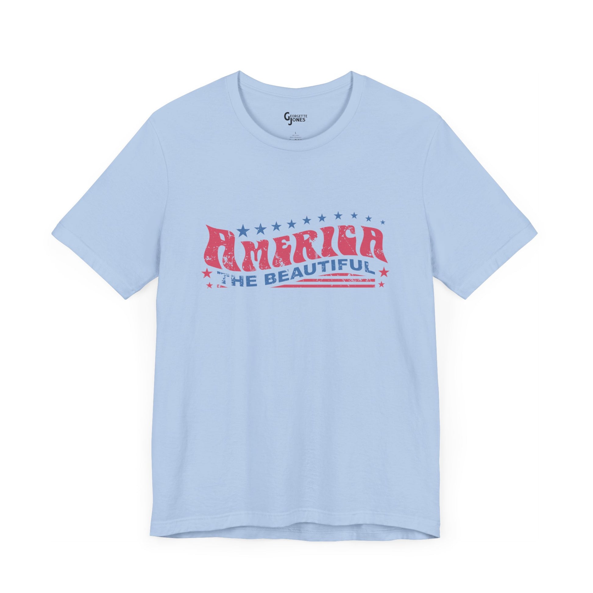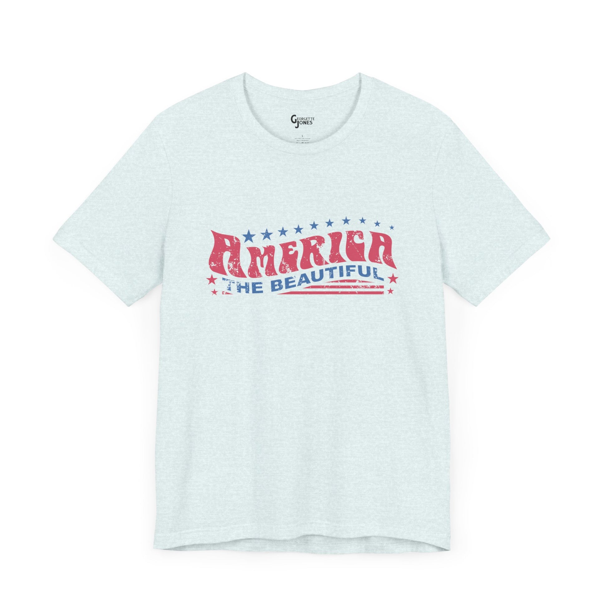 Celebrate the birth of the USA with our exclusive "America the Beautiful" t-shirt! Show your patriotism with pride in this stylish and comfortable tee featuring timeless text that honors the beauty and spirit of our nation. Perfect for Independence Day celebrations and year-round wear, it's a must-have for every proud American!