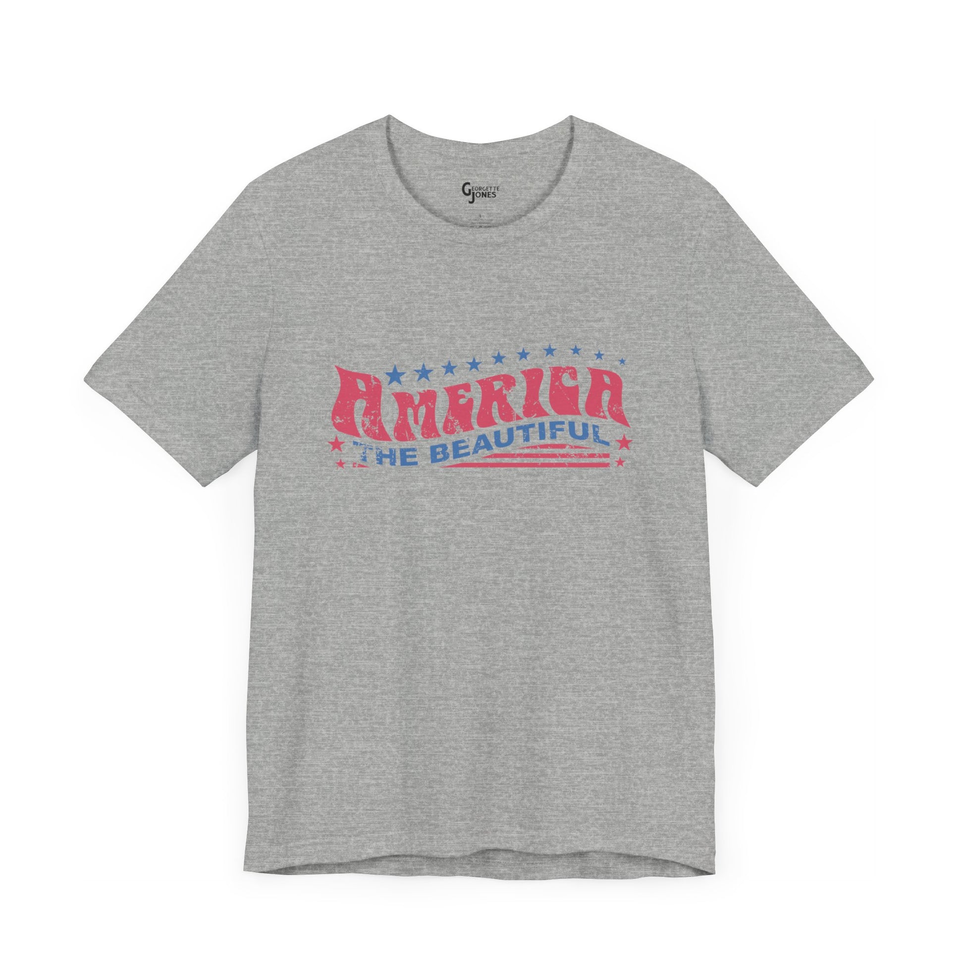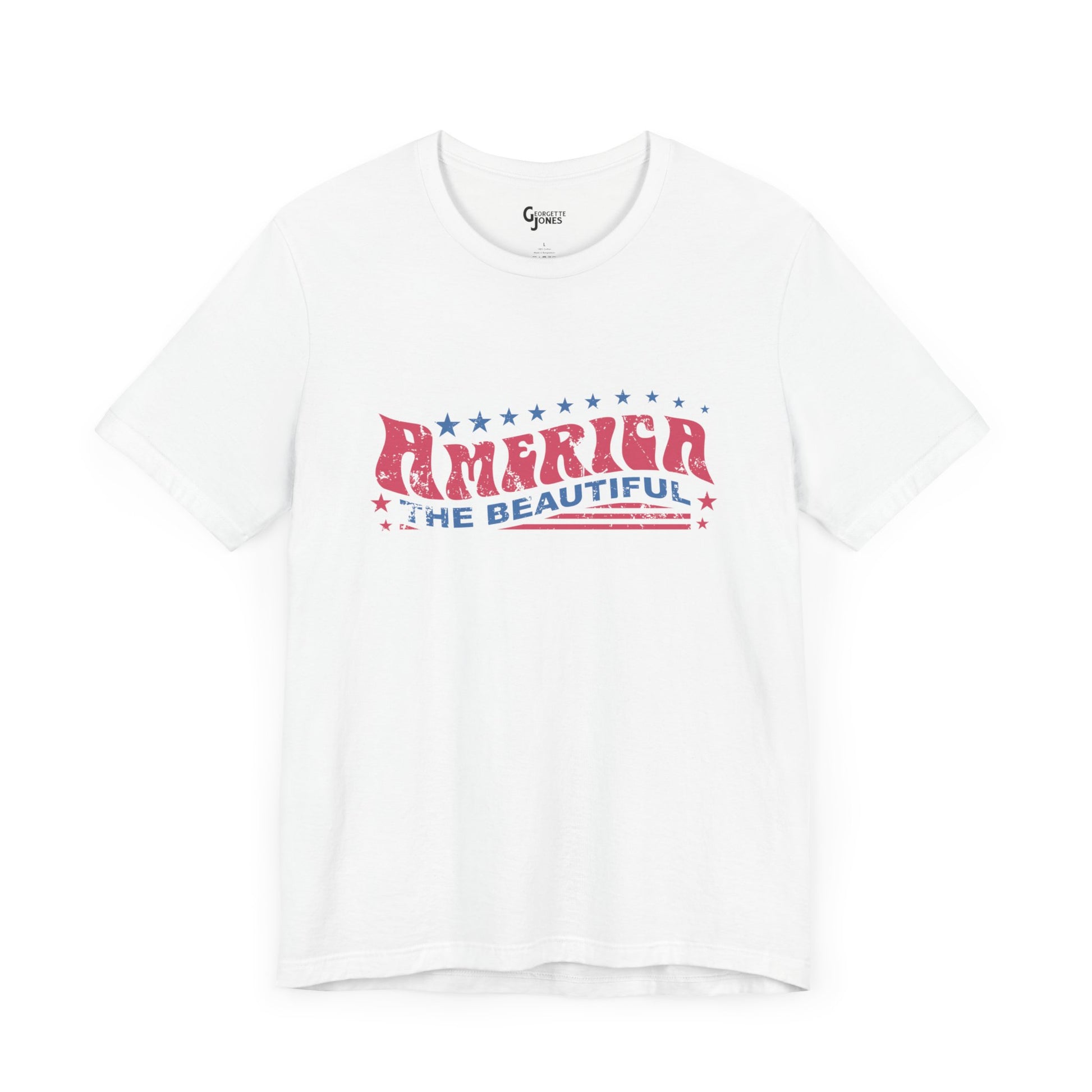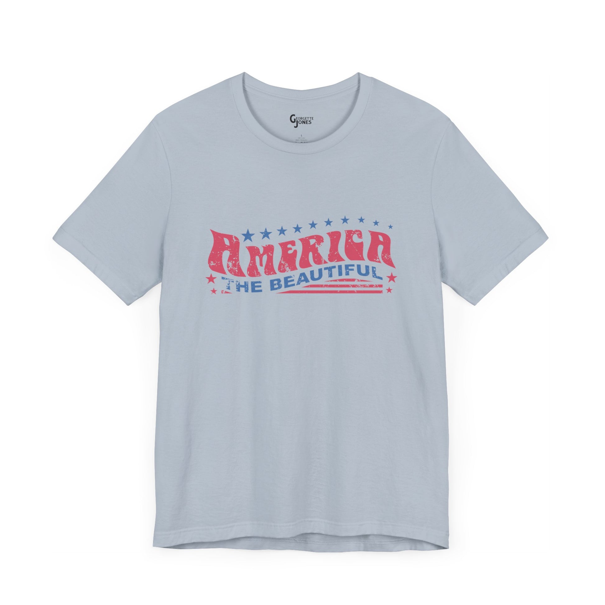 Celebrate the birth of the USA with our exclusive "America the Beautiful" t-shirt! Show your patriotism with pride in this stylish and comfortable tee featuring timeless text that honors the beauty and spirit of our nation. Perfect for Independence Day celebrations and year-round wear, it's a must-have for every proud American!