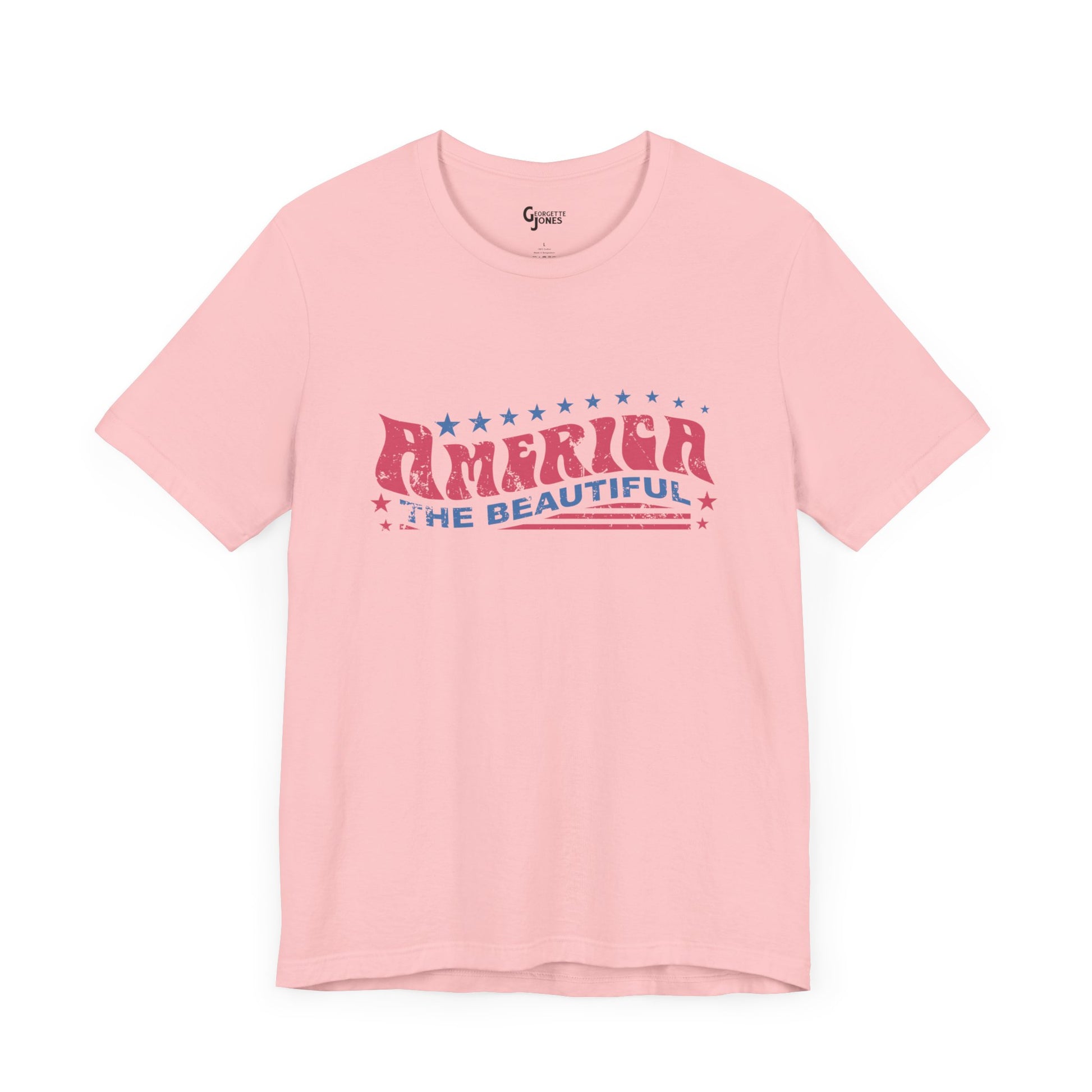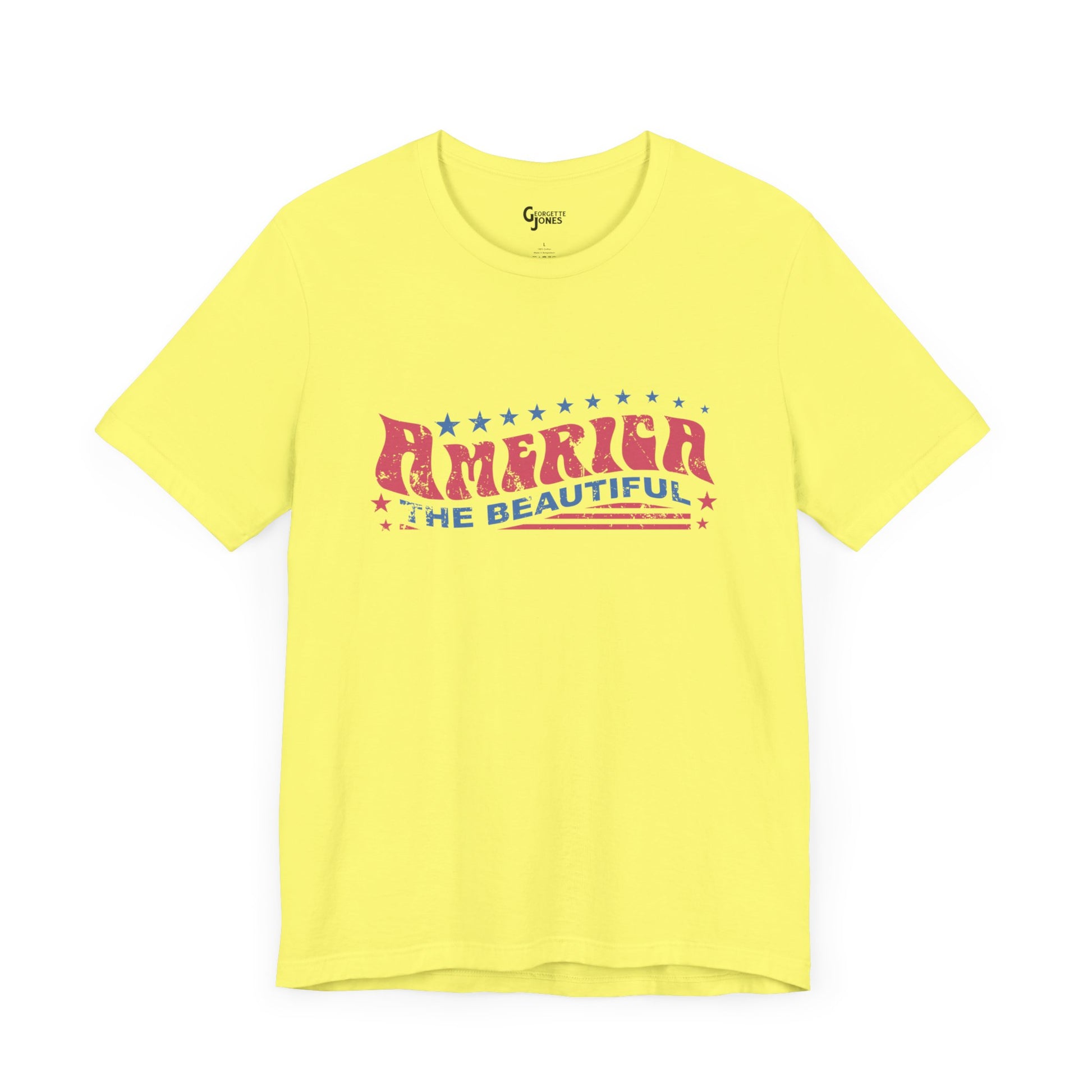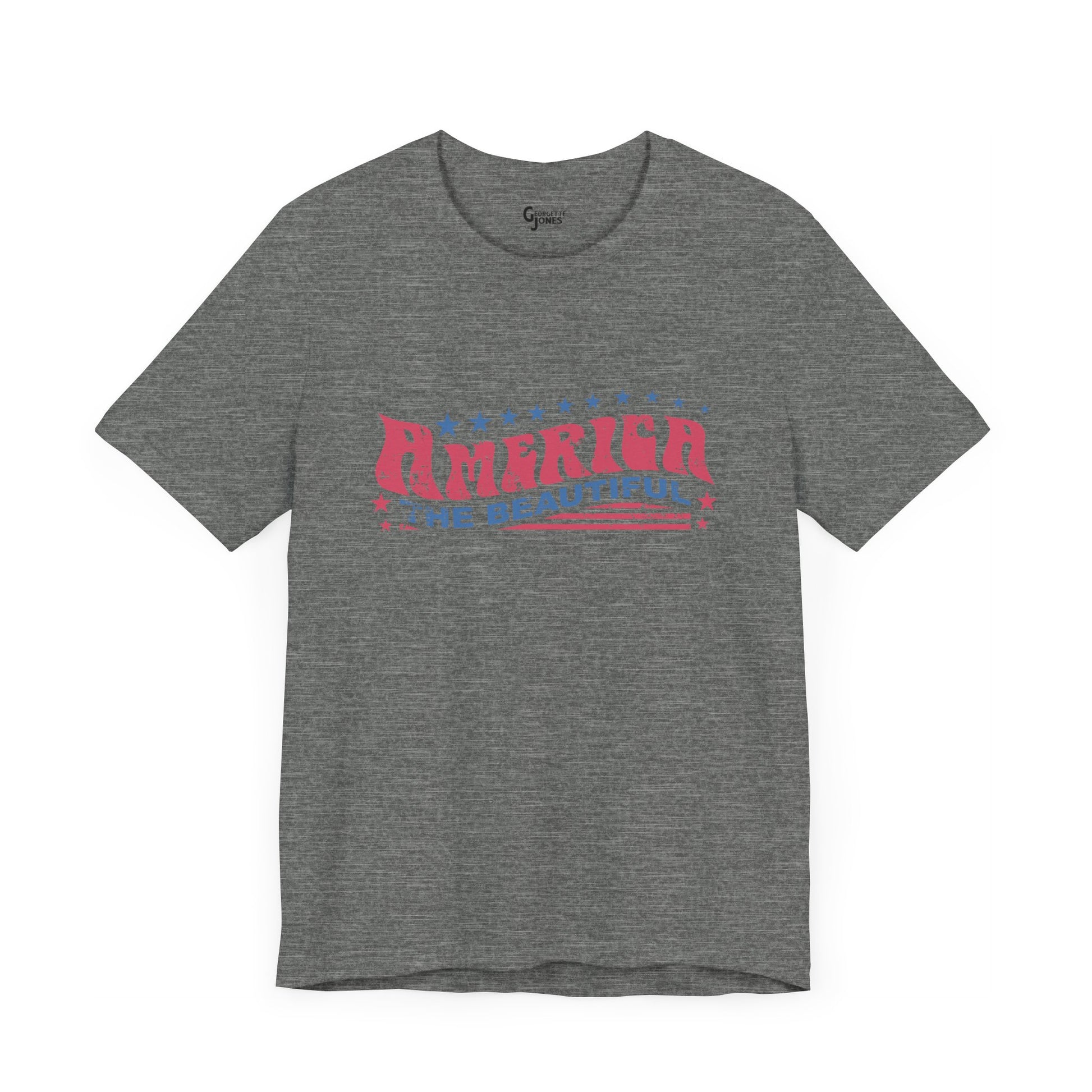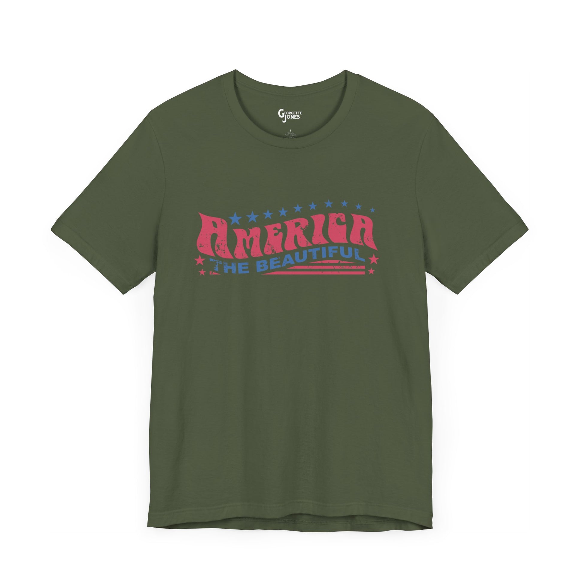 Celebrate the birth of the USA with our exclusive "America the Beautiful" t-shirt! Show your patriotism with pride in this stylish and comfortable tee featuring timeless text that honors the beauty and spirit of our nation. Perfect for Independence Day celebrations and year-round wear, it's a must-have for every proud American!