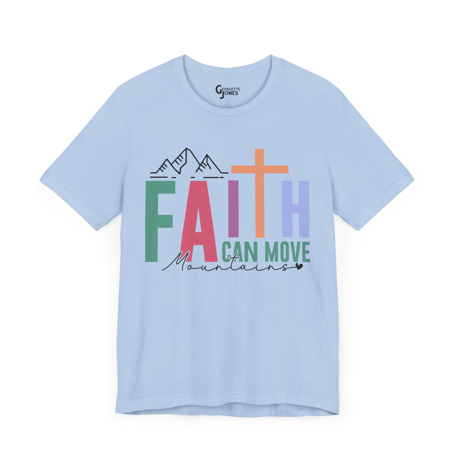 Embrace the power of belief with our "Faith Can Move Mountains" t-shirt! This inspiring and comfortable tee serves as a daily reminder that faith can overcome any obstacle. Perfect for everyday wear, it encourages you to trust in God’s strength and inspires others to believe in the extraordinary!