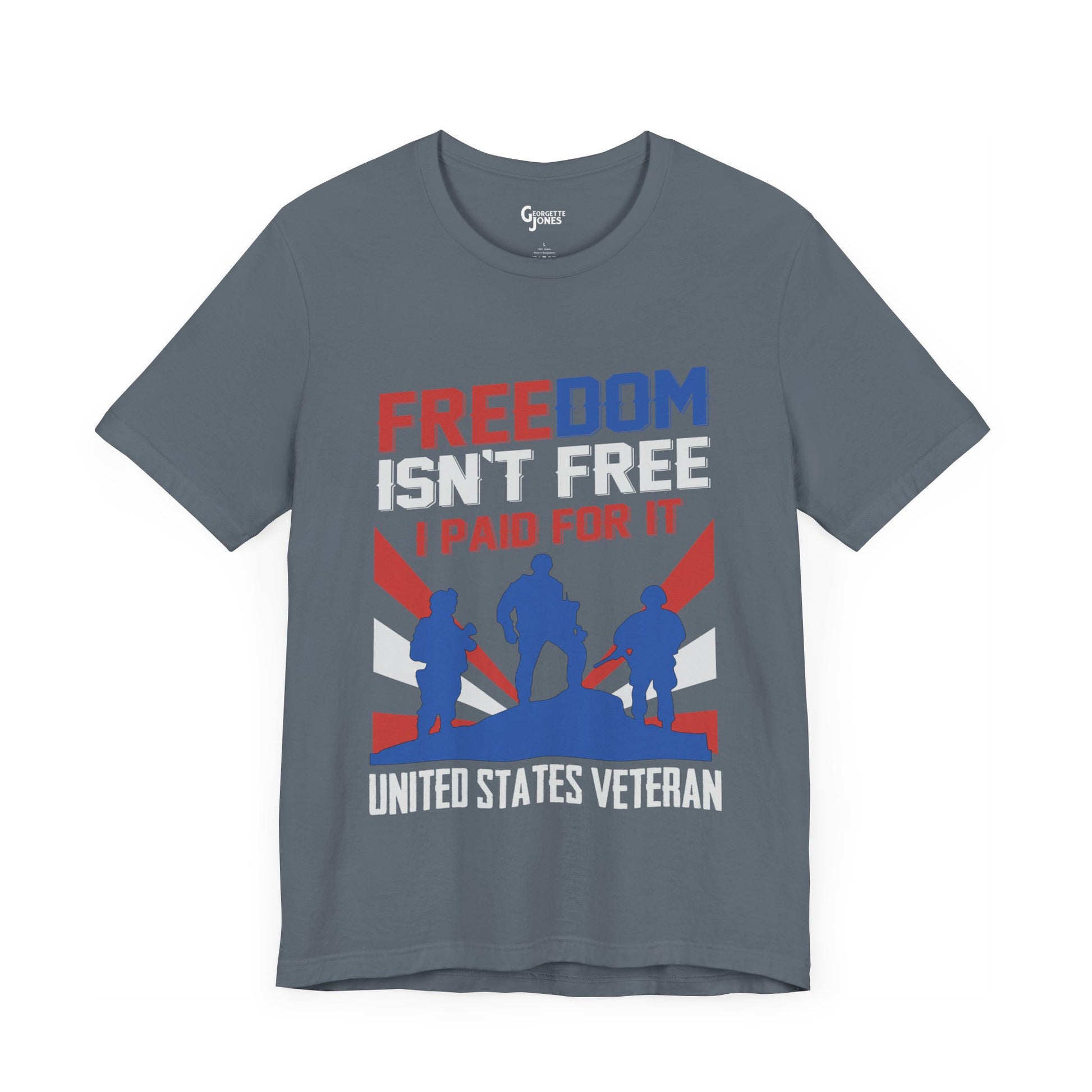 Celebrate patriotism with our exclusive "Freedom Isn't Free" t-shirt, designed for proud United States veterans. Show your support for those who served with this bold statement piece. Crafted for comfort and durability, it's perfect for everyday wear or gifting to fellow patriots. Wear your pride and honor their sacrifice today!