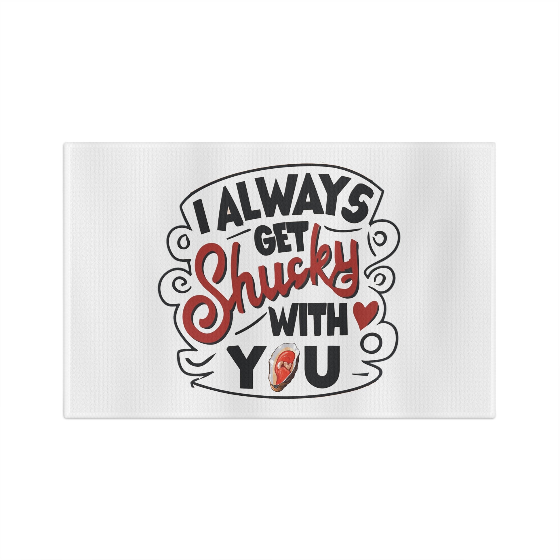 Elevate your kitchen style with our 'I always get shucky with you' tea towel. Inspired by the heartwarming lyrics of a country tune, these towels bring a dash of humor to your daily chores. Perfect for tea aficionados and country music fans, they make kitchen moments extra special. Get shucky vibes now!
