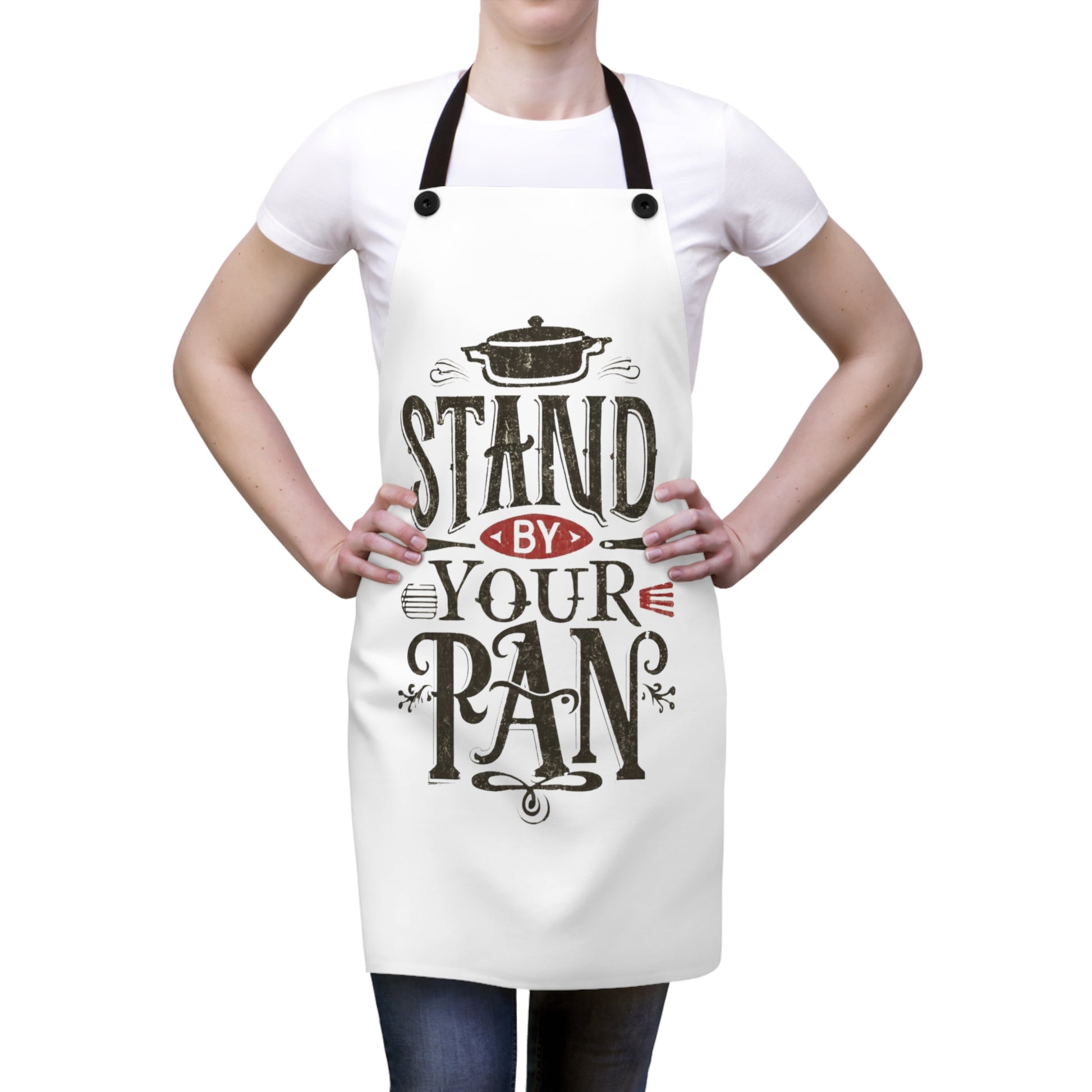 Embrace culinary charm with our 'Stand by Your Pan' aprons. A playful twist on the classic tune, these aprons blend country vibes with kitchen flair. Crafted for style and function, they're the perfect companion for your culinary adventures. Elevate your cooking experience and stand by your pan with pride!