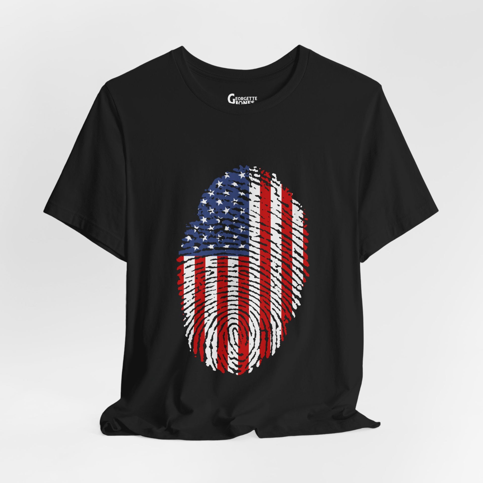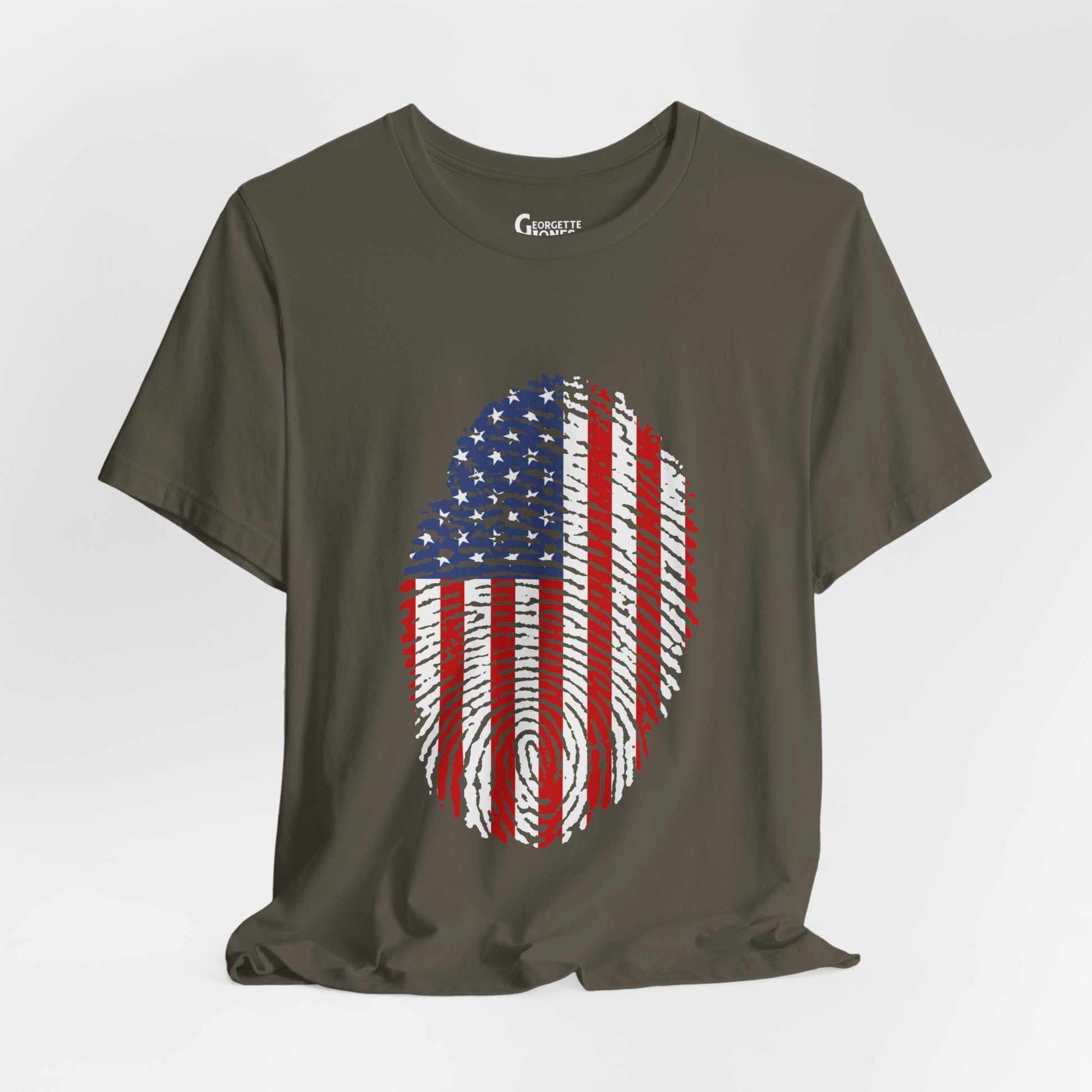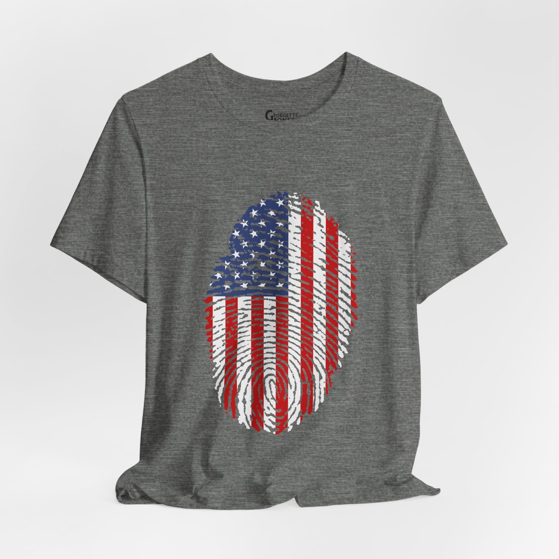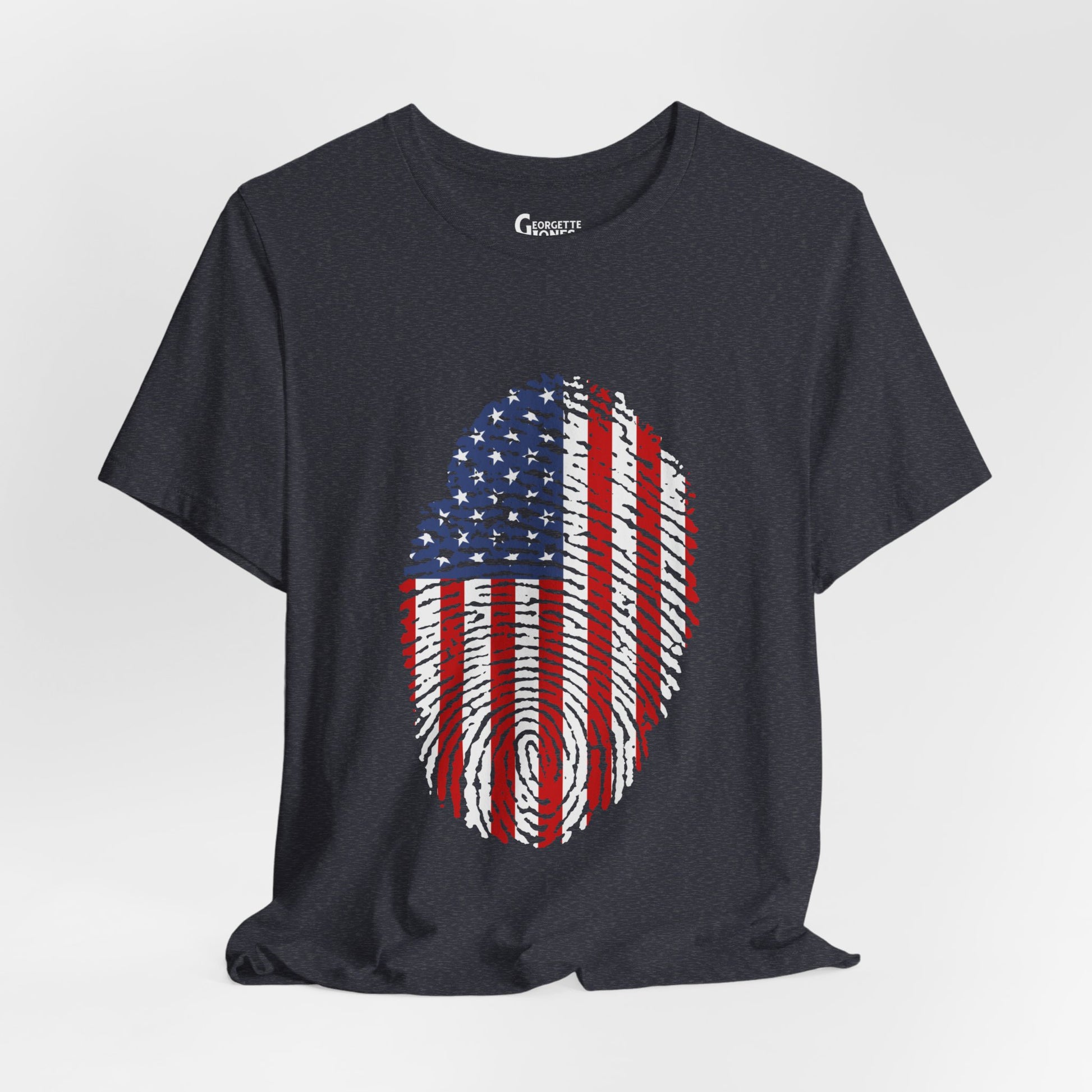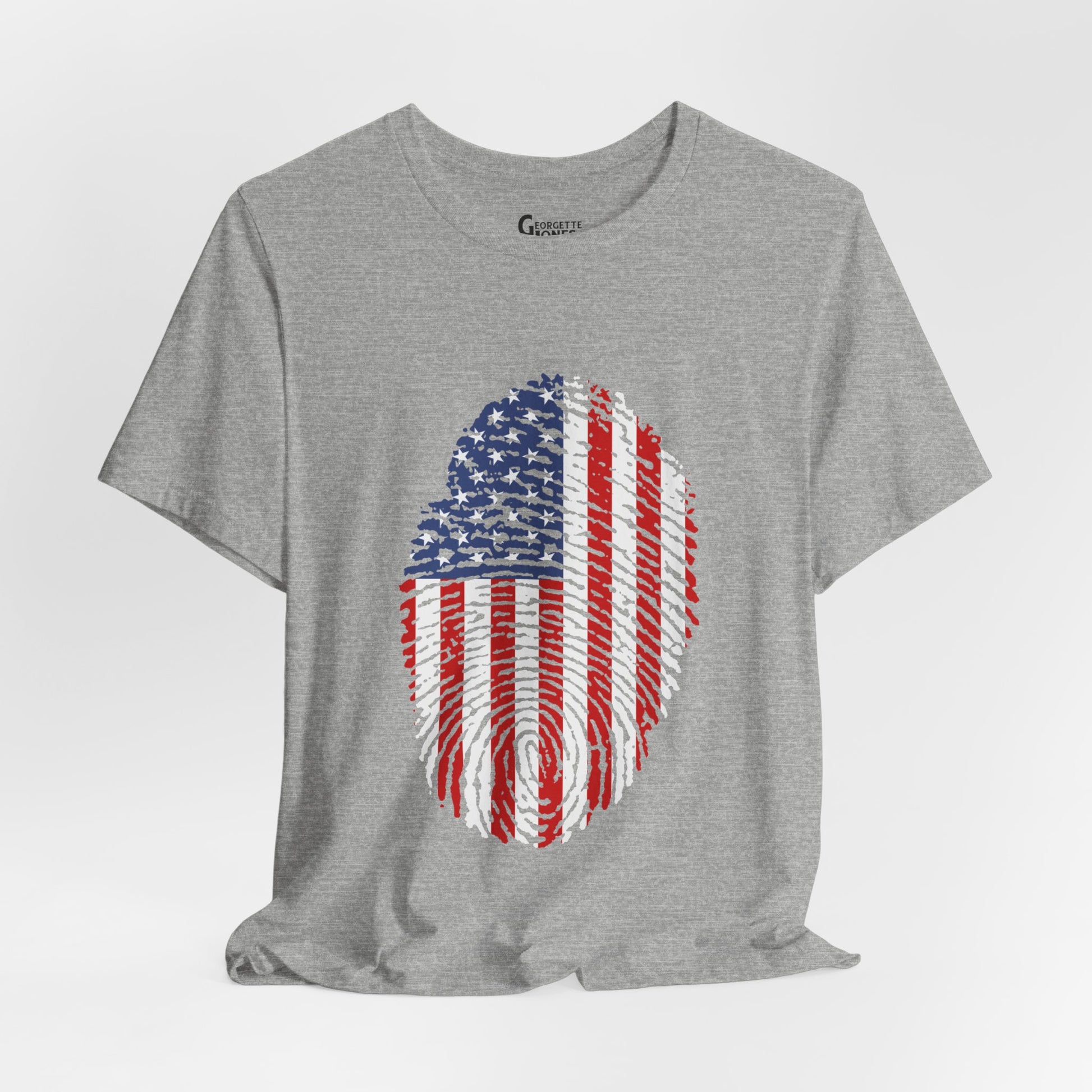 Embrace patriotism with our "Thumbprint Flag" t-shirt, a unique design featuring the USA flag as a thumbprint. Show your love for country in style. Perfect for veterans and proud citizens alike. Limited edition, order now!