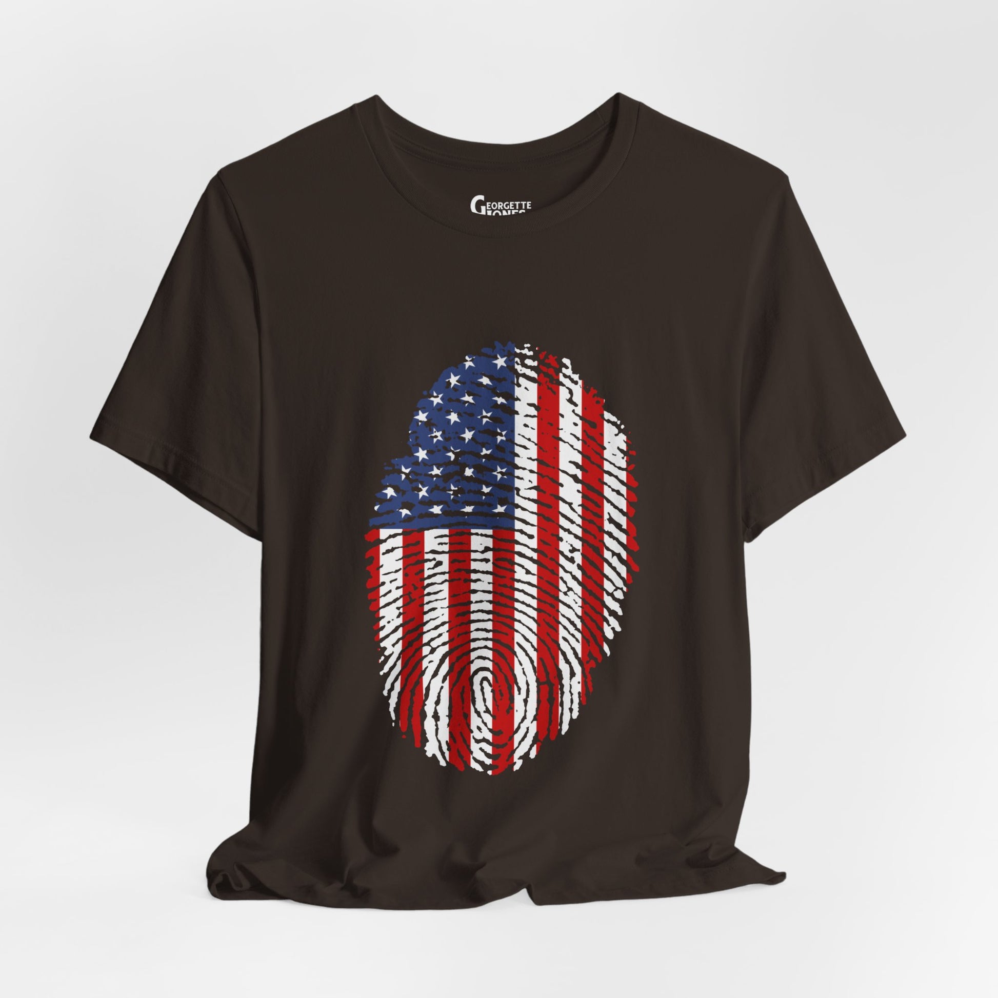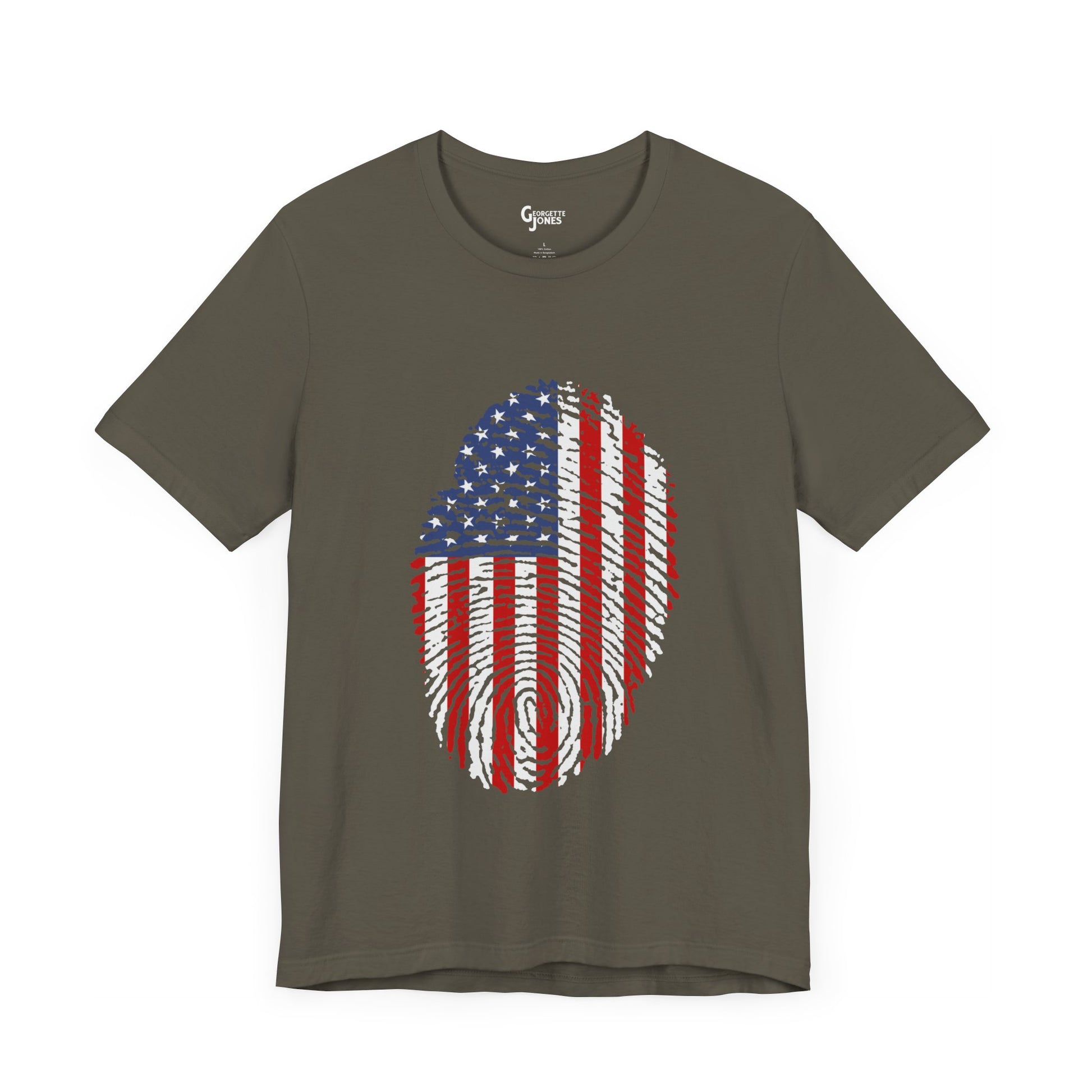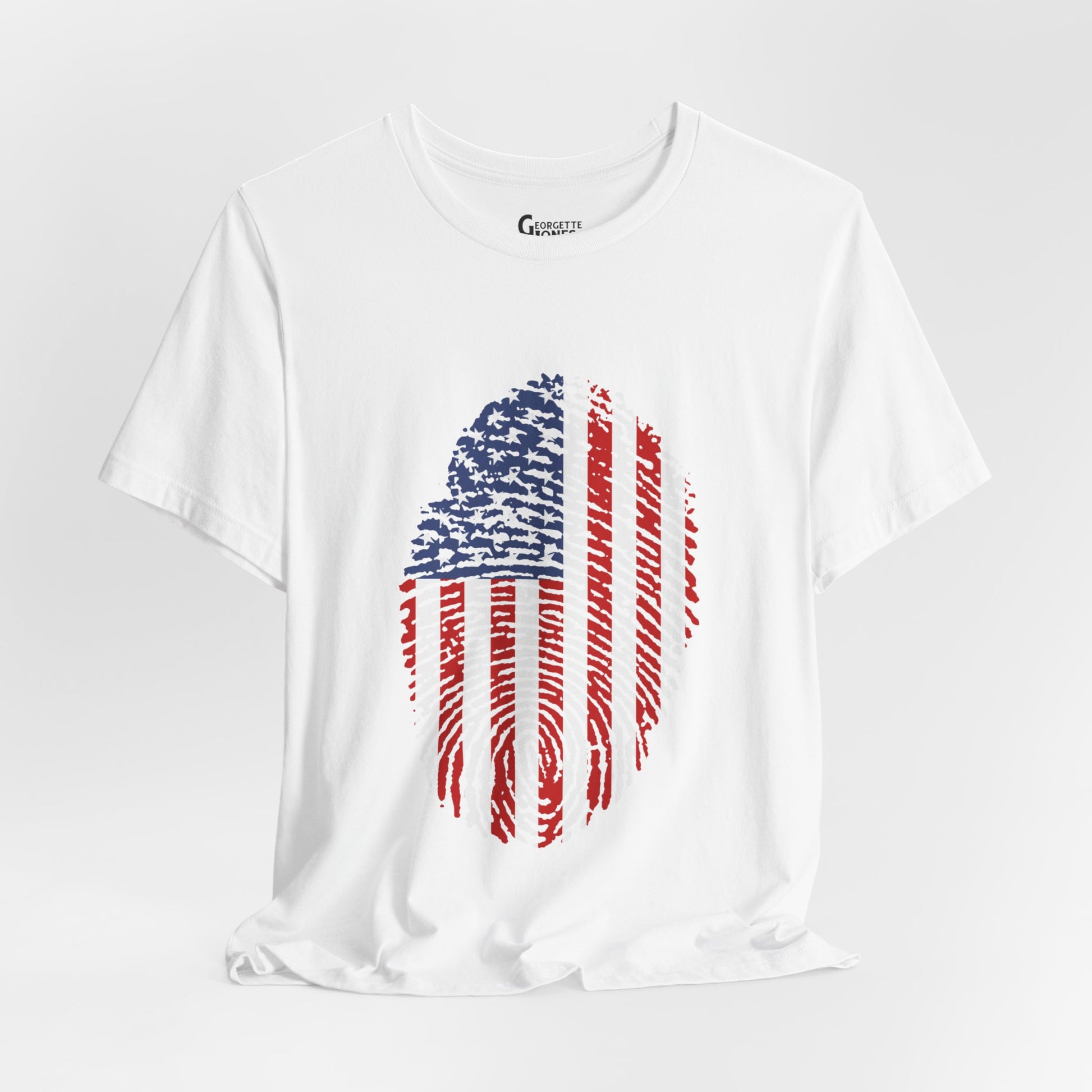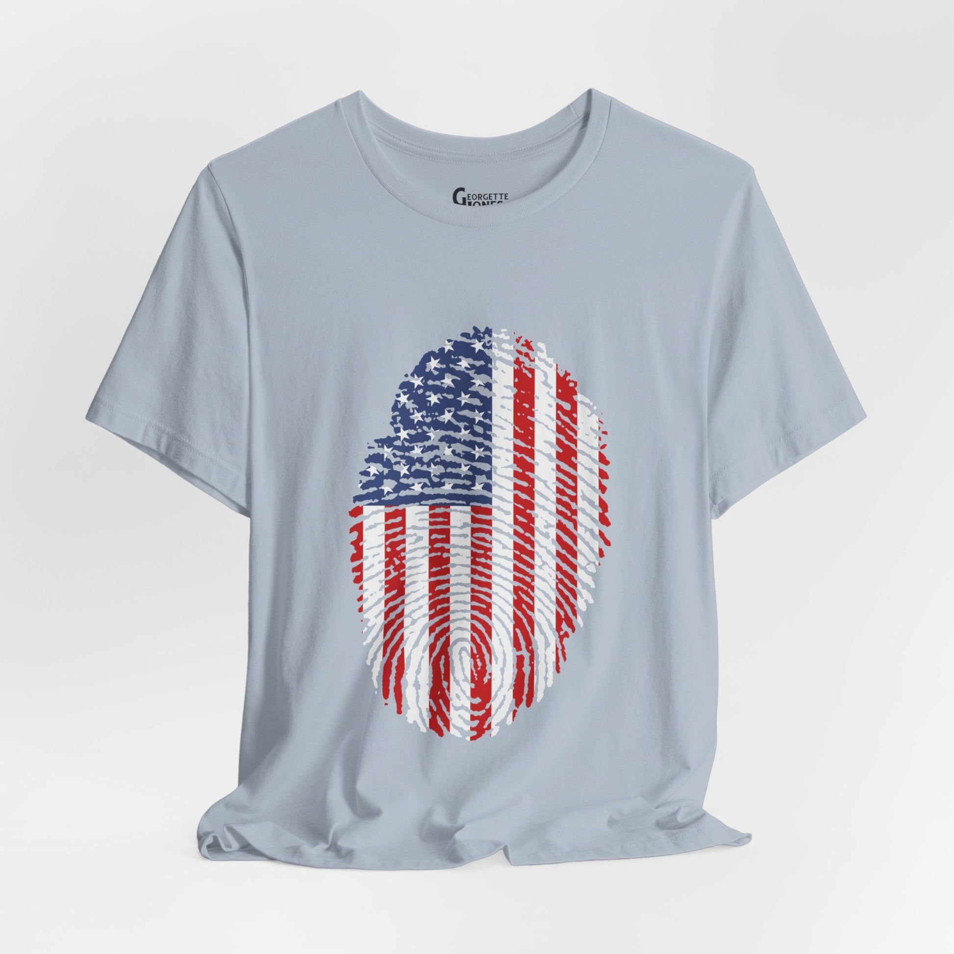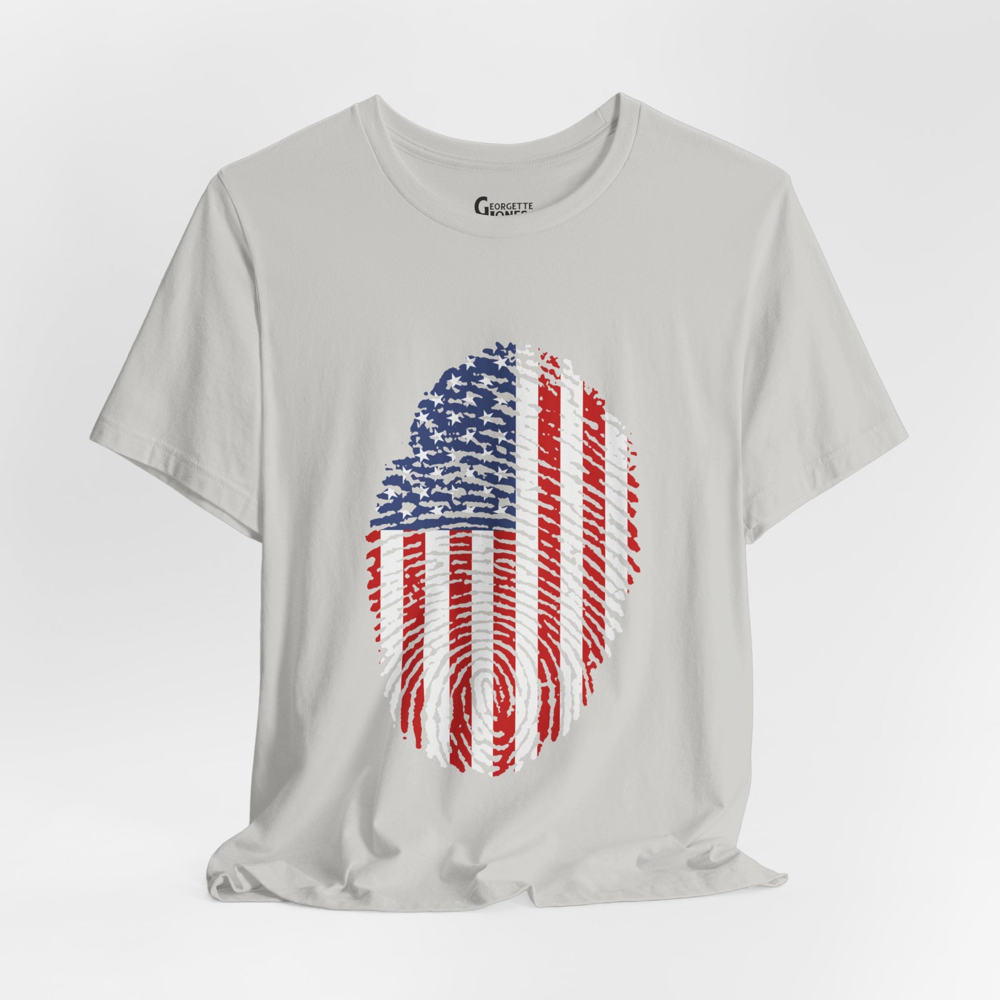Embrace patriotism with our "Thumbprint Flag" t-shirt, a unique design featuring the USA flag as a thumbprint. Show your love for country in style. Perfect for veterans and proud citizens alike. Limited edition, order now!